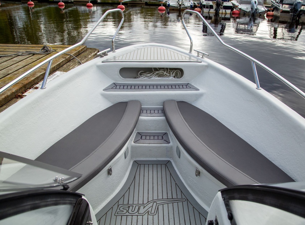Suvi 63 Duo Fisher on kalastajille suunniteltu, kuomulla katettava tuplapulpetillinen uistelu/kalastusvene. Lisävarusteena olevasta perähyttikuomusta voi hankkia etuosan, väliseinän ja takaosan erillään. Fisherissä on sama erinomainen runko ja ajo-ominaisuudet kuin perusmallin 63 Duo:ssa. Irrotettavat takapenkin nurkkapalat antavat entistäkin enemmän taka-avotilaa ja mahdollistaa helpon liikkumisen kalastuksen yhteydessä. Kaksi pitkää säilytystilaa esim. vavoille. Keulakansi Fisher-mallissa on kiinteä ilman luukkua. Köysi/ankkriboxi on käytettävissä etupenkin selkänojan aukosta. Keulakanteen on helppo pultata vaikka keulamoottori ”taivasankkuri”. Keulamoottorin johdoille valmis putkitus keulasta välipohjan alta takatilaan. Itsetyhjenevä.