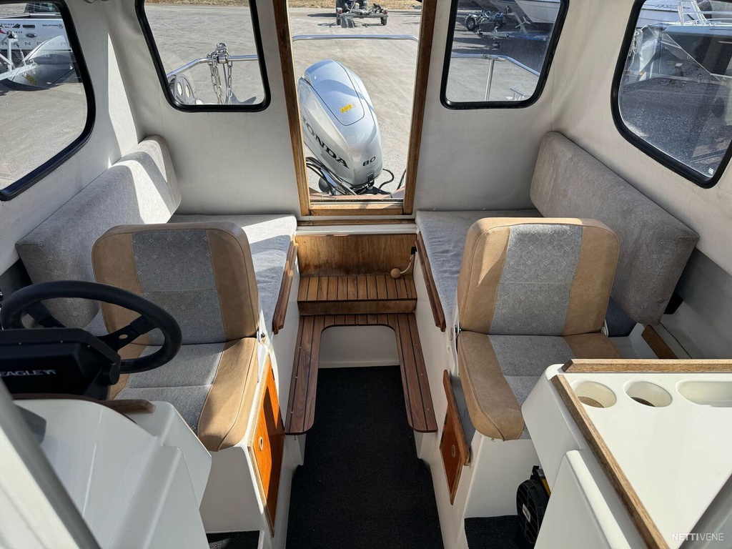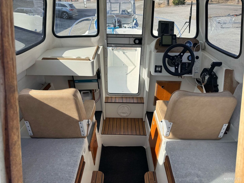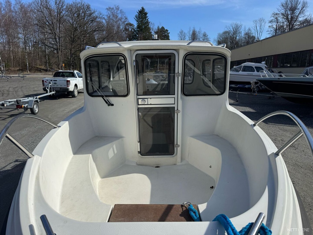 Veneessä lämmitin, trimmilevyt, plotteri ja kaiku. Respon 1700V662 traileri kuuluu hintaan.